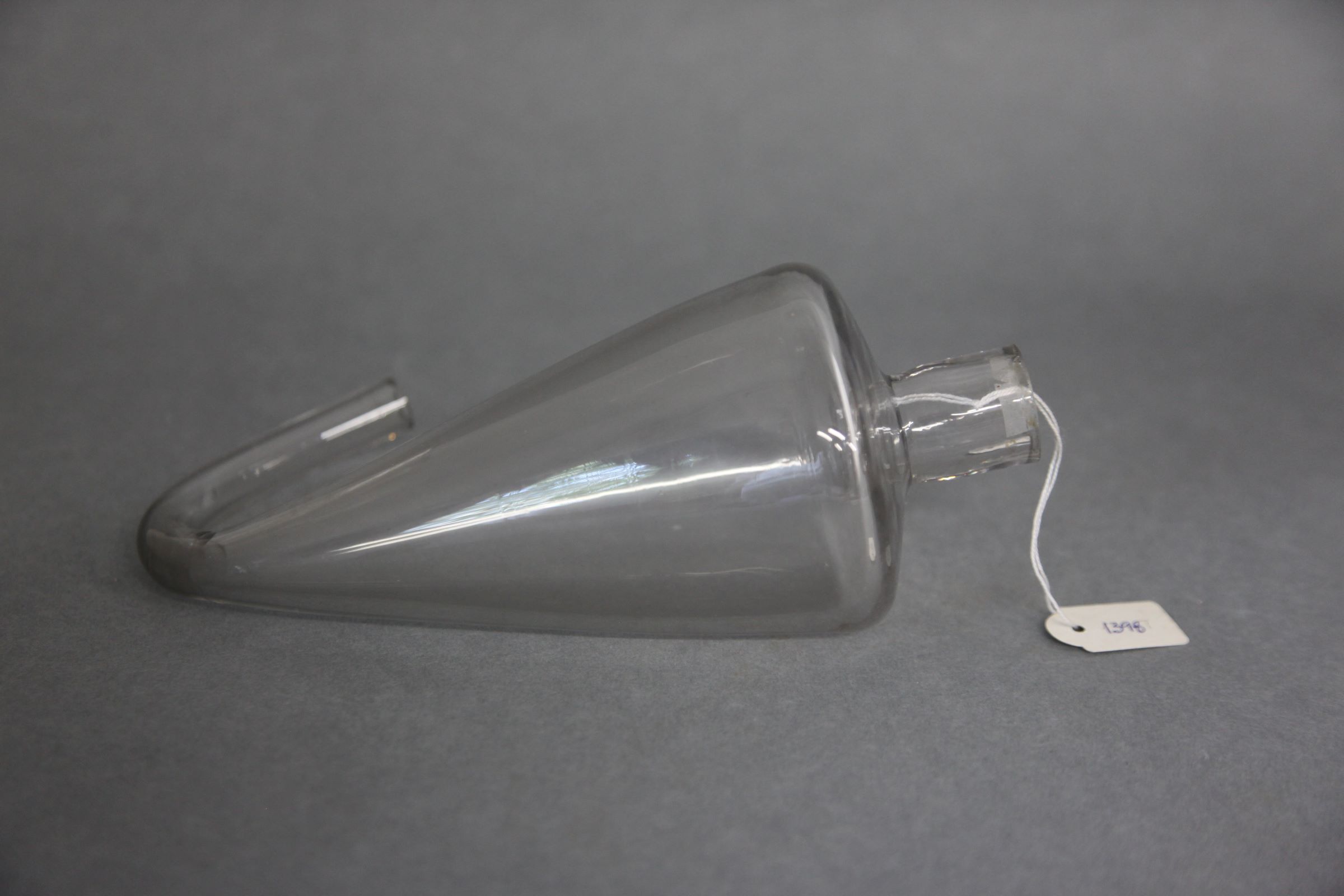 | Descrição: | Ampola de forma cónica, composta por duas tubuladuras, uma no topo e outra na parte inferior sendo esta curva (não existindo uma torneira como é habitual neste tipo de utensílio). |