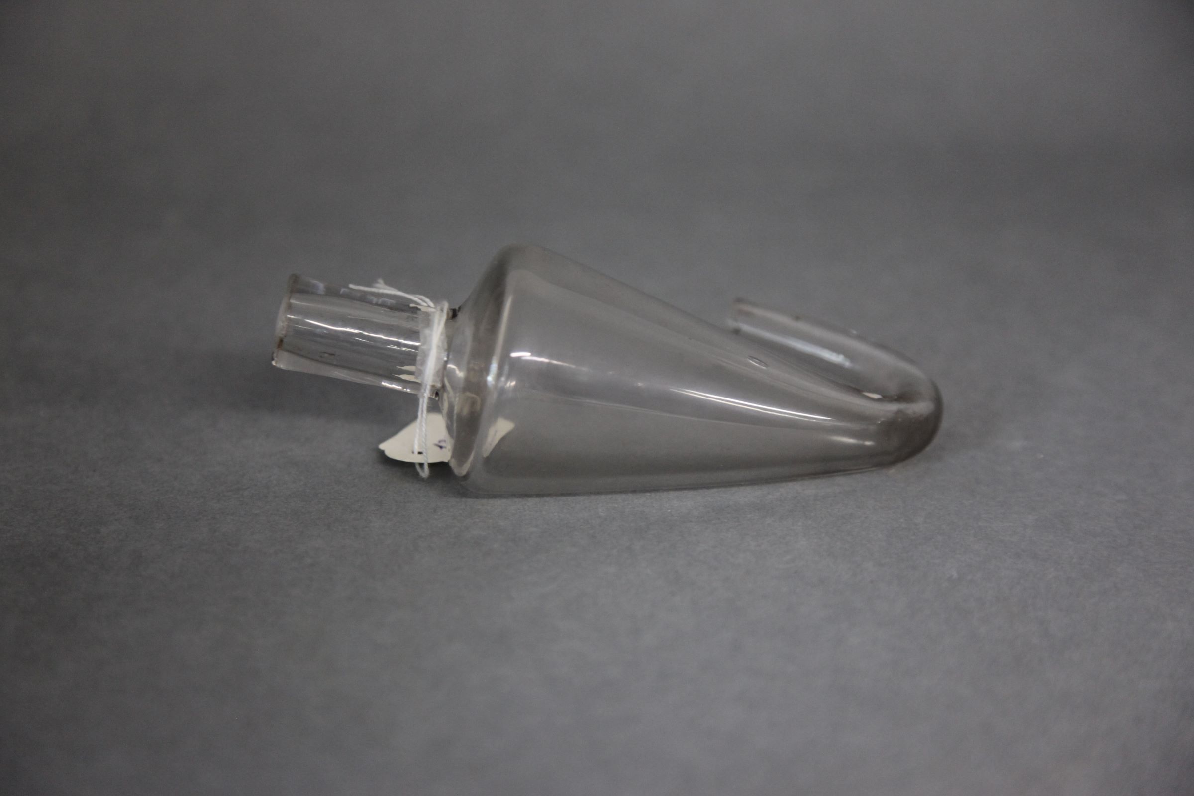 | Descrição: | Ampola de forma cónica, composta por duas tubuladuras, uma no topo e outra na parte inferior sendo esta curva (não existindo uma torneira como é habitual neste tipo de utensílio). |