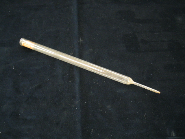 | Descrição: | Composto por um tubo de vidro que se estreita numa das pontas servindo de pipeta. |