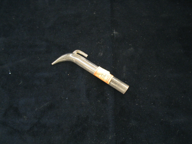 | Descrição: | Tubo de vidro de pequena dimensão que afunila de modo curvo numa das laterais sendo que a outra lateral afunila de forma reta. |
