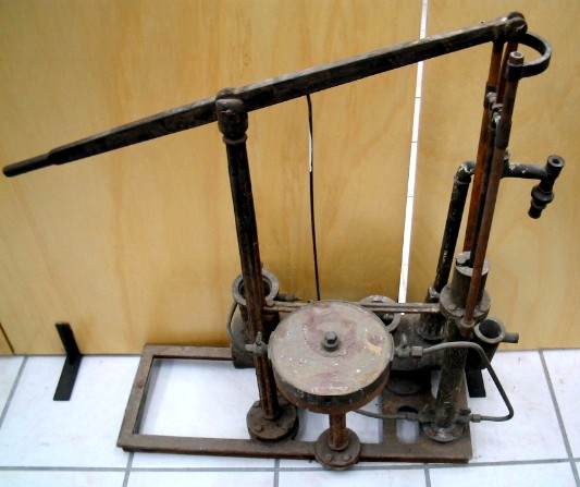 | Descrição: | Composta por um só corpo de bomba, alto e efeito simples com duas divisões ou tabiques munidos de válvulas que limitam as excursões do êmbolo que é formada por duas rodelas de couro. O êmbolo é movido por uma alavanca, que, por sua vez é munida de uma manivela. No canal de aspiração fica interposto um reservatório que contem ácido sulfúrico que se agita por um mecanismo apropriado quando a alavanca funciona. É o ácido sulfúrico que absorve o vapor de água do gás rarefeito. Possui ainda uma platina sobre a qual assenta uma campânula de vidro que é sustentada por uma coluna. Com esta máquina obtêm-se rapidamente o vácuo seco, a meio milímetro. |