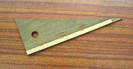| Descrição: | Composto por uma tábua em madeira em forma de triângulo retângulo devidamente graduada em centímetros. |