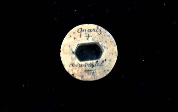 | Descrição: | Prisma montado num suporte circular de cortiça. |