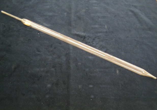 | Descrição: | Composta por um tubo de vidro, que é mais estreito numa das extremidades. Possui uma escala para medir volumes variáveis. |