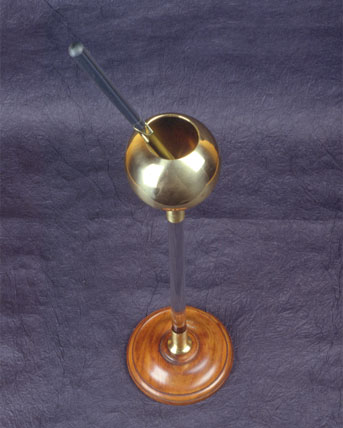 | Descrição: | Composto por uma esfera metálica oca, aberta na parte superior e assente numa coluna de vidro, com uma base circular em madeira. Uma vareta em vidro, com uma ponta em latão, completa o instrumento. Introduz-se na cavidade a vareta e coloca-se em contacto com a parede interior da esfera. Retira-se em seguida com cuidado para não tocar nas bordas da abertura. Pode-se constatar por meio de um eletroscópio, que não está eletrizado. Eletriza-se imediatamente pelo contato com a superfície exterior. |