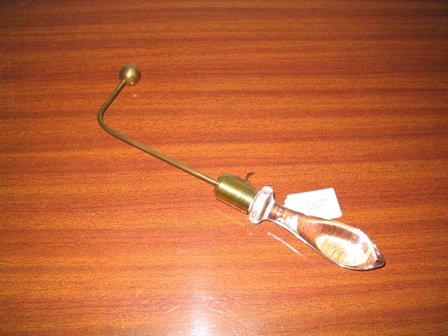 | Descrição: | Composto por um punho em vidro e vara de latão em ângulo reto com um botão também de latão na ponta. |