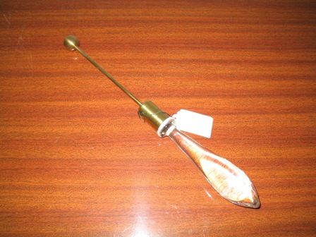 | Descrição: | Composto por um punho em vidro e um vara em latão com botão na sua extremidade. |