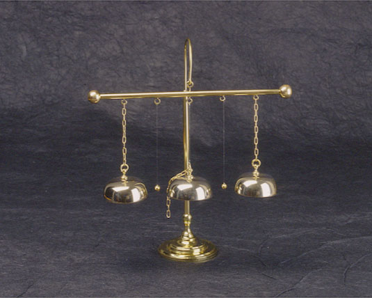 | Descrição: | Composto por 3 campainhas sustentadas por uma régua metálica horizontal. As das extremidades são suspensas por fios condutores e a do meio por um fio isolador, mas que comunica com a terra através de uma corrente metálica. Entre as campainhas estão duas esferas metálicas suspensas por fios de seda. Esta estrutura é suportada por um suporte em metal que pode ser ligado a uma máquina eletrostática. |
