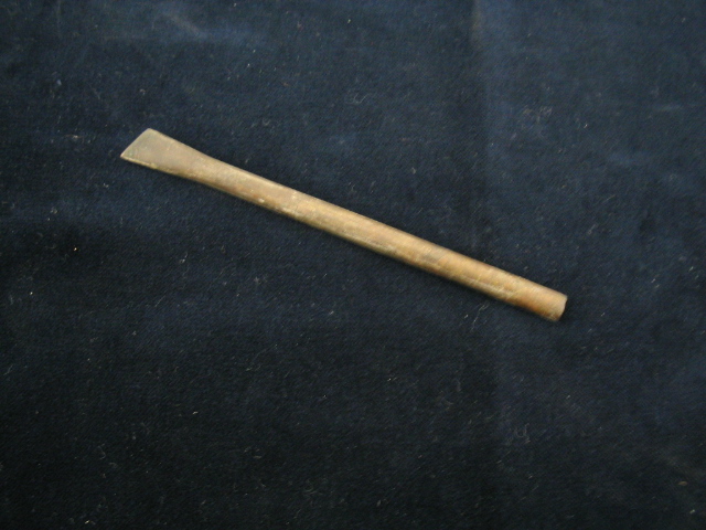 | Descrição: | Composto por um pequeno tubo em latão, que quando encaixado no tubo do bico de Bunsen modificava a sua chama, pois uma das suas extremidades é mais estreita. |