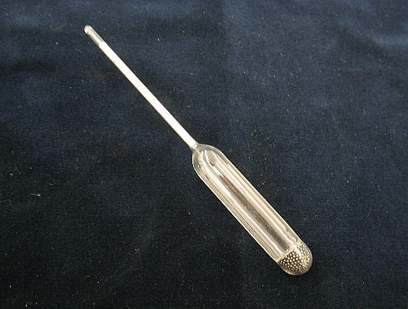 | Descrição: | Composto por uma haste de vidro perfeitamente cilíndrica, com uma escala no seu interior. Na parte inferior tem uma ampola, que no fundo tem bolinhas de chumbo, para o centro de gravidade ficar por baixo do centro de impulsão e conservar a haste na vertical quando flutua. |