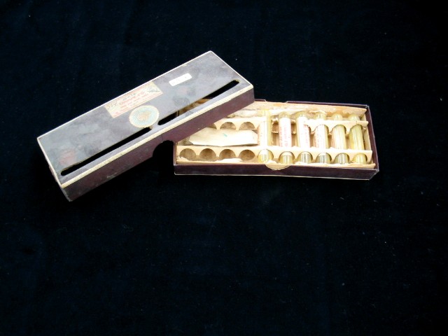 | Descrição: | É composto por uma caixa de cartão onde são armazenados os tubos de cloreto de ouro por uma questão de organização e de facilitar a deslocação. |