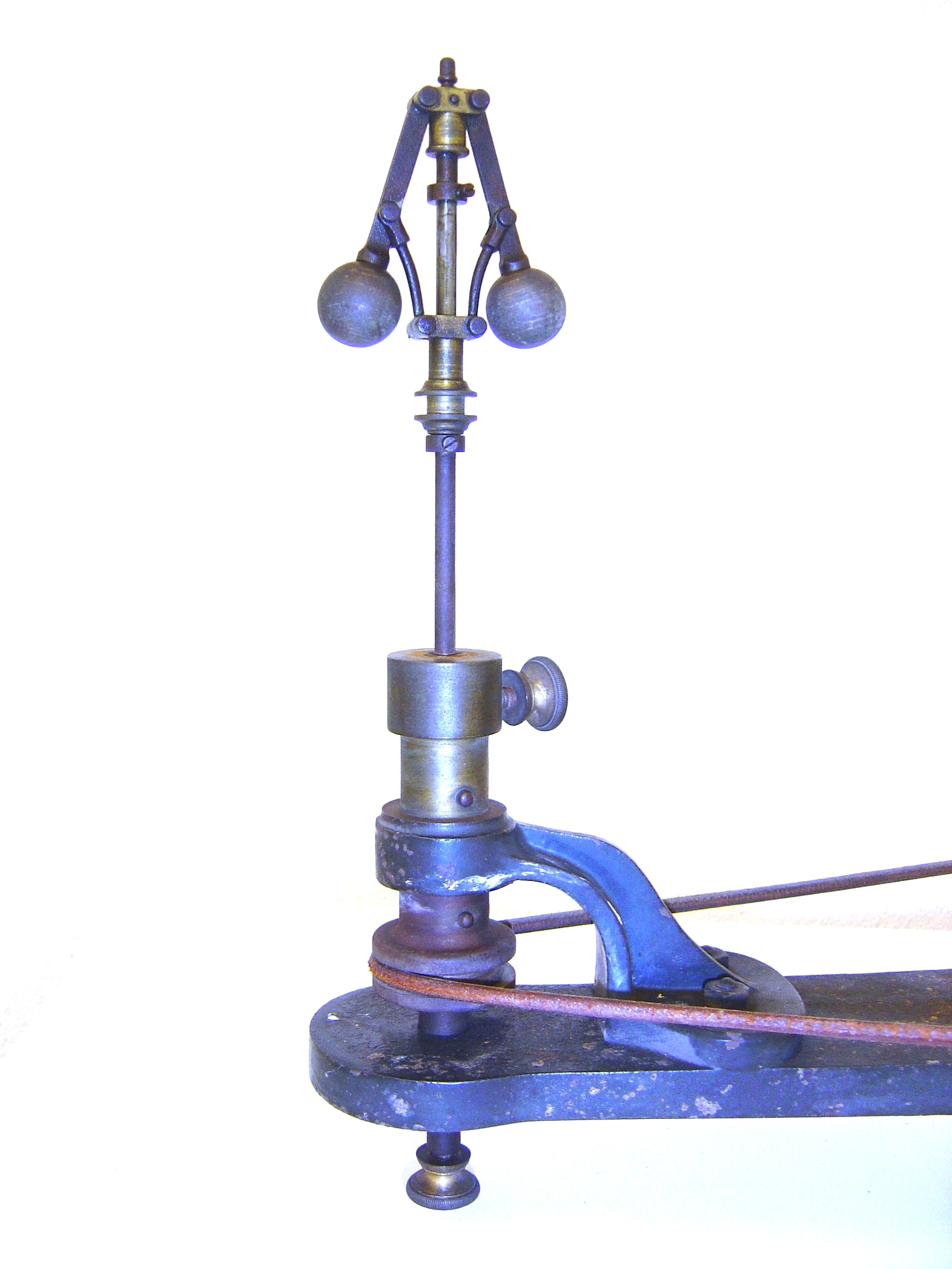 | Finalidade: | Utilizado, quando colocado em uma máquina de rotação, para ilustrar um dos efeitos da força centrífuga. Em máquinas a vapor, este regulava, de um modo automático, a abertura ou o fechamento das válvulas, controlando assim o fluxo do vapor em função da velocidade de rotação da máquina. |