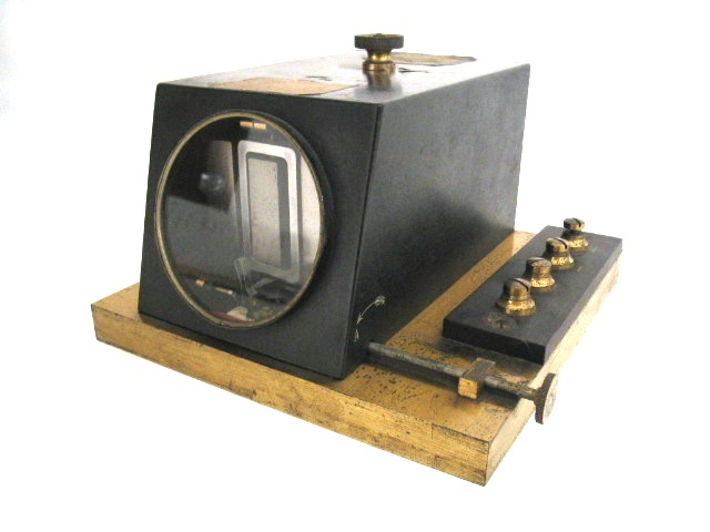 | Descrição: | Composto por um íman permanente de ferro em forma de ferradura, com um quadro móvel entre os seus polos magnéticos. Este quadro possui no seu interior um cilindro de ferro macio para aumentar o campo magnético. Para que tudo funcione na perfeição este aparelho tem diversos pontos de afinação. Um deles é um regulador que movimenta uma mola colocada por baixo do quadro móvel, denominada também por binário amortecedor. Estão também incluídos quatro bornes exteriores em que dois correspondem ao circuito de alimentação do quadro, com o polo positivo e o negativo devidamente assinalados, funcionando com corrente contínua. Os outros dois são para o circuito interrompido. Todo o dispositivo está assente numa base em latão, estando o sistema principal protegido por uma pequena caixa, com um parafuso na parte superior e com um vidro num dos lados permitindo observar os movimentos do quadro móvel. |