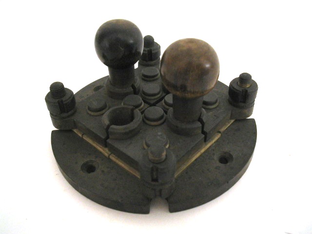 | Descrição: | Comutador de construção simples constituído por uma base em latão com quatro ligadores, possuindo duas cavilhas, também elas em latão. Tem igualmente quatro orifícios quase semicirculares, abertos em frente uns aos outros nos quadrantes, podendo sempre serem postos em comunicação uns com os outros com a ajuda das referidas cavilhas. Os fios são presos aos parafusos de cada quadrante. |