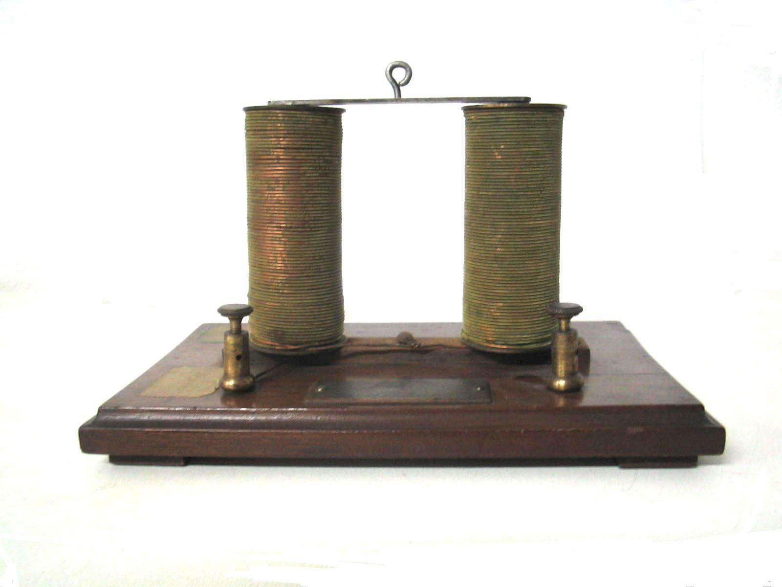| História do Objecto: | Foi em 1825 que William Sturgeon (1783-1850) descreveu pela primeira vez um eletroíman, que podia ter duas formas: em ferradura e retilíneo. O principal contributo de Sturgeon foi o de ter bobinado o condutor elétrico em hélice sobre um núcleo de ferro macio, desta forma o efeito magnético da bobina foi aumentado pelo efeito ferromagnético do material do núcleo. Para isso, construiu um eletroíman que, tendo apenas uma camada de fio eletrocondutor. Sobre o núcleo magnético envernizado, foi capaz desenvolver uma força de vinte vezes o seu peso. A partir dessa altura os fabricantes de instrumentos de física passaram a construir eletroíman, que foram vendidos por diferentes centros de investigação ou de divulgação da ciência. Iniciou-se uma época em que diversos investigadores realizaram as experiências sobre os componentes do circuito elétrico do eletroíman, permitiram ir aumentando a sua força de atração. |
