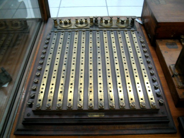 | Descrição: | Este comutador oferece um variadíssimo número de combinações. Sobre uma placa de madeira, embora também pode ser em ebonite, assentam duas séries de lâminas: umas transversais e outra verticais, mantendo-se entre as de cada série o mais rigoroso paralelismo, e cruzando-se em ângulo reto as de uma e outra série. As duas séries, porém, estão separadas por interposição da placa isoladora. Em cada ponto da sobreposição ou de cruzamento de duas lâminas, há um furo que atravessa a lâmina superior, a substância isoladora, e a lâmina inferior, de maneira que, introduzindo uma cavilha metálica nesse furo, ela estabelece contacto tanto com a lâmina superior como com a inferior. Cada uma das lâminas de uma série, liga-se a uma telegrafia, e cada uma das da outra série a um aparelho ou recetor, com a interposição de uma bússola, para-raios, etc. Por esta forma, visto que a lâmina transversal número um, por exemplo, passa sucessivamente sobre cada uma das lâminas verticais, podemos liga-la, indistintamente, com qualquer destas, pela interposição de uma cavilha. Supondo que cada lâmina da série transversal comunica com um aparelho, e cada uma da série vertical com uma linha telegráfica podemos ligar o aparelho correspondente à lâmina transversal número um, indistintamente a qualquer das linhas correspondentes às lâminas verticais. Por esta forma é fácil modificar rapidamente a distribuição das linhas pelos aparelhos de que a estação dispõe. A comunicação direta, estabelece-se também com muita facilidade e rapidez entre quaisquer linhas. Além do rigoroso paralelismo das lâminas, exige o aparelho uma regularidade nas dimensões dos furos e nas cavilhas, bastante para que cada cavilha sirva para qualquer um dos furos; e além disso, que as cavilhas assegurem sempre, pela sua forma, um bom contacto metálico entre as duas lâminas. Para melhor se realizar este resultado, as cavilhas devem ser ligeiramente cónicas e fendidas longitudinalmente, para que a extremidade em que tem de formar contacto com a lâmina posterior, não deixe de o formar. Mais garantida fica a boa ligação metálica, fazendo que os contactos se efetuem lateralmente, e não no prolongamento da cavilha. Para esse efeito aparafusam-se às lâminas posteriores uns pequenos blocos metálicos, que devem ficar colocados, na parte anterior, nos espaços compreendidos entre cada lâmina vertical. Os furos são repartidos pelas duas peças correspondentes, de forma que a cavilha entrando, se comprime lateralmente sobre cada uma das peças metálicas. |