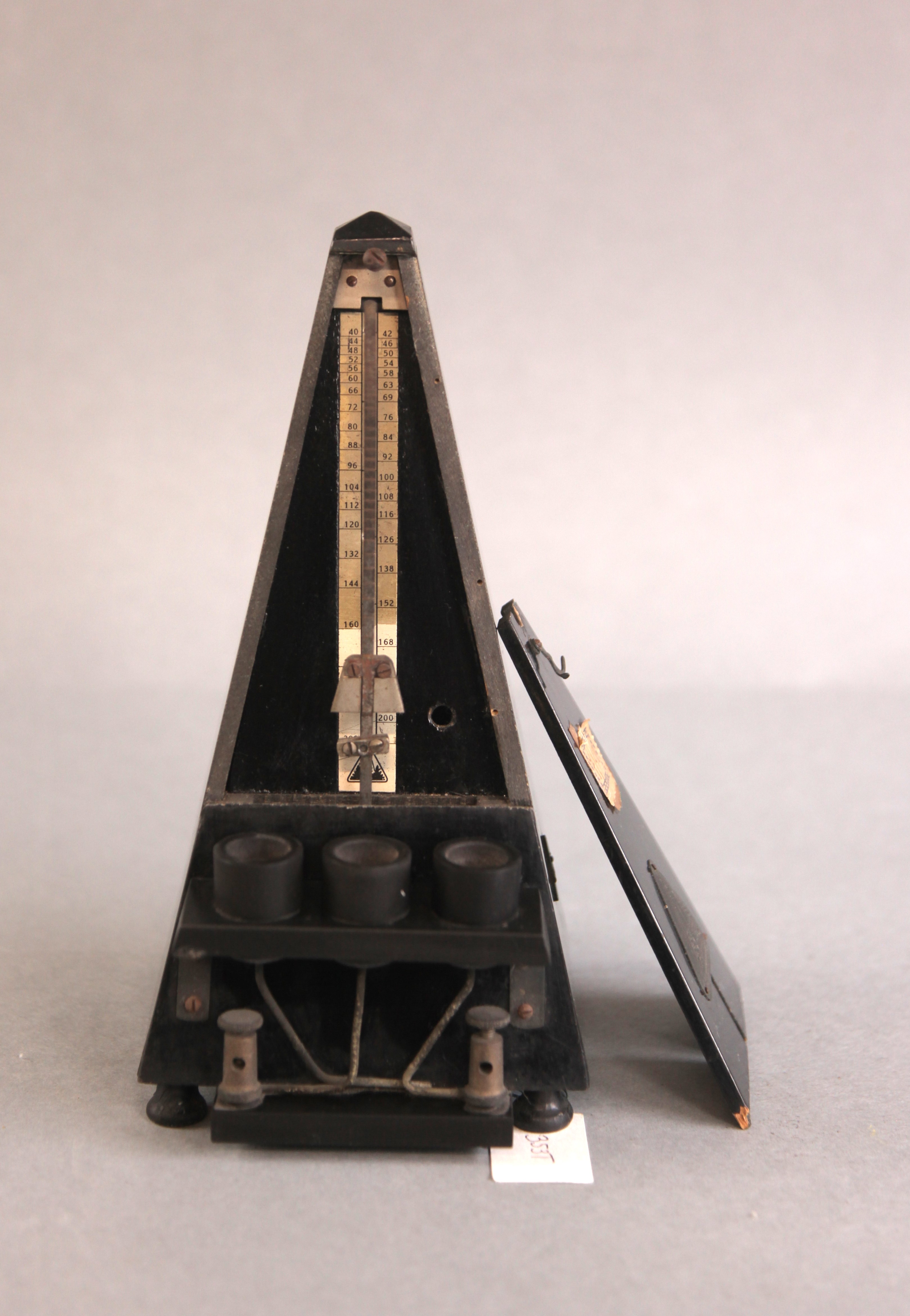 | História do Objecto: | O metrónomo foi inventado por Dietrich Nikolaus Winkel em 1815. O metrónomo foi desenvolvido por Johann Maelzel (1772-1838), em 1816, com um mecanismo semelhante ao de um relógio, cuja velocidade é regulável a partir de um peso basculante que faz oscilar um pêndulo de acordo com o tempo pré-definido. |