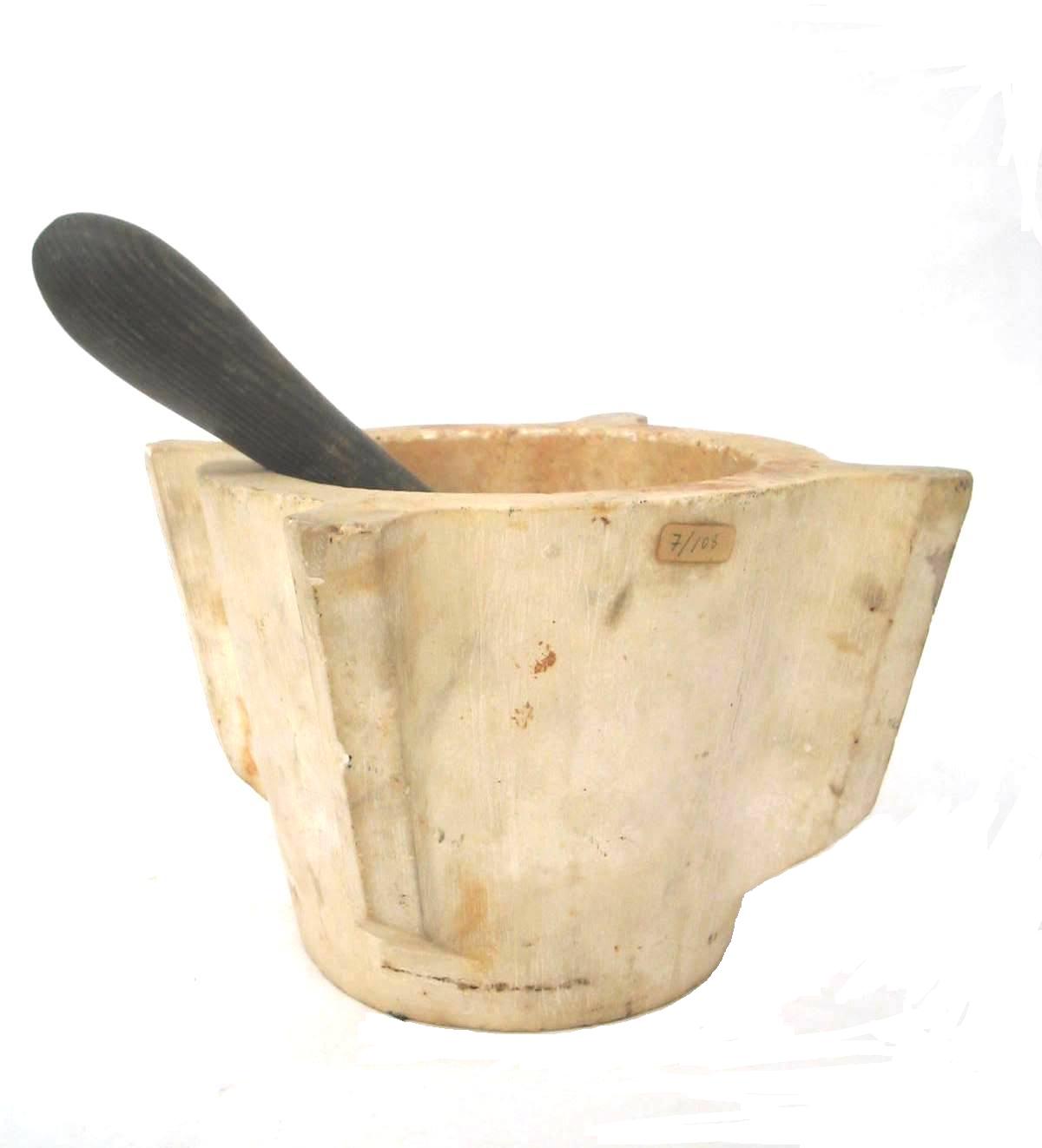 | Denomimaçao Especifica: | Almofariz em mármore com mão de mármore com cabo de madeira, Gral, Mortar |