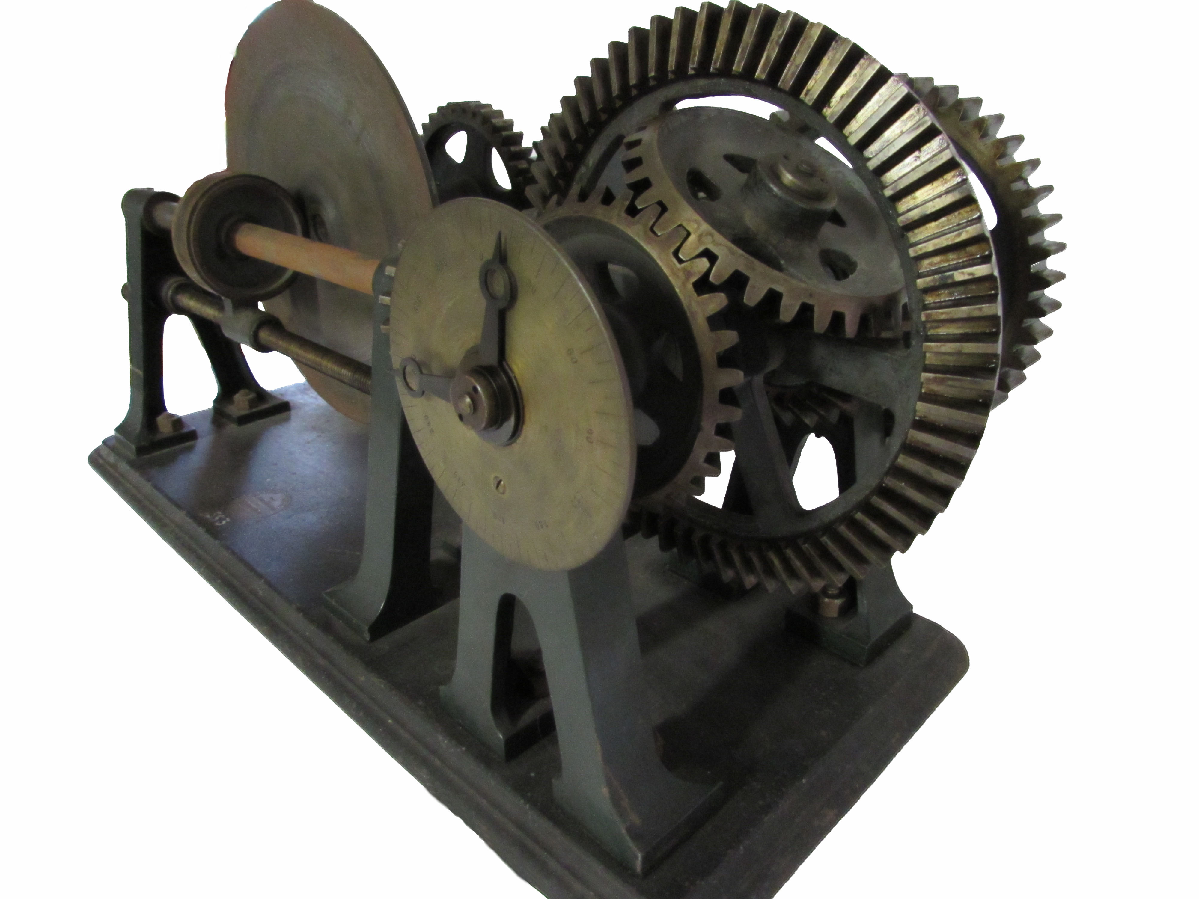 | Descrição: | Este modelo é constituído por oito rodas dentadas de diferentes diâmetros e ângulos face à sua base e por um parafuso sem fim que converte o movimento retilíneo em movimento de rotação. Composto maioritariamente por ferro e outras ligas metálicas com um elemento de madeira (manivela). |