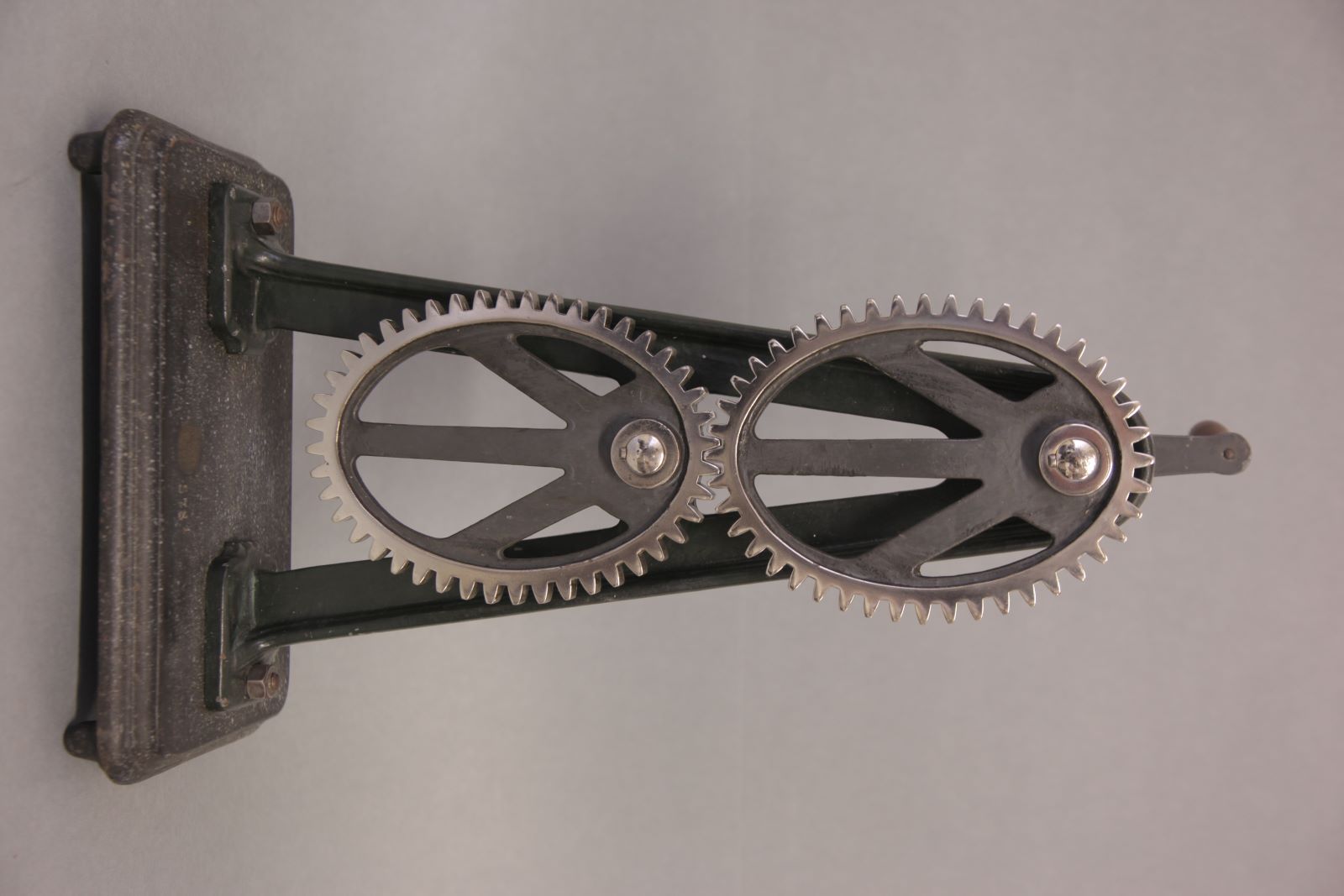 | Descrição: | Como o próprio nome da peça o define, este objeto carateriza-se por duas rodas elípticas sendo que esta engrenagem detém dentes retos. Este objeto é composto por madeira e ferro. |
