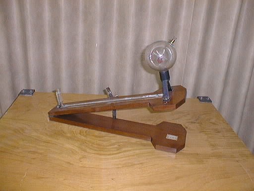 | Descrição: | Este instrumento é uma espécie de termómetro de ar formado por um globo de vidro unido a um tubo capilar ligeiramente inclinado e que termina num tubo vertical de maior diâmetro. No globo de vidro existem guarnições metálicas, entre as quais se coloca o arame por onde se vai fazer passar a descarga. Enchendo de um líquido colorido o tubo capitar e ligando as guarnições metálicas com as armaduras de um condensador ou máquina eletrostática, o calor libertado pelo arame dilata o ar e determina o aumento da pressão, que se mede por a descida da coluna líquida. |