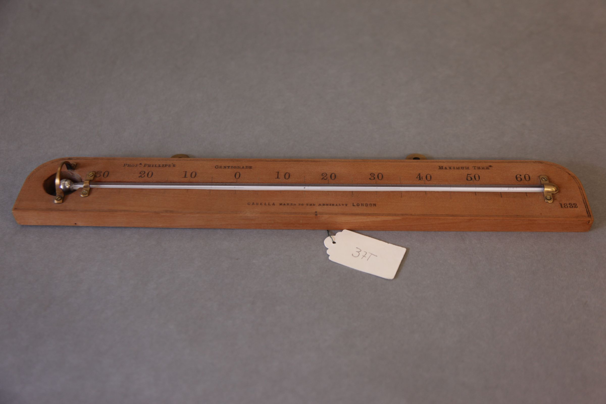 | Descrição: | Composto por uma prancheta onde está fixado o termómetro propriamente dito. Este termómetro é de mercúrio e contem um pequeno índex formado por um cilindro de aço. O mercúrio, quando dilata impele na sua frente o índex, e quando se contrai, abandona-o na posição em que se encontra, porque o mercúrio não tem aderência com o aço. Este índex marca deste modo a mais alta temperatura. |