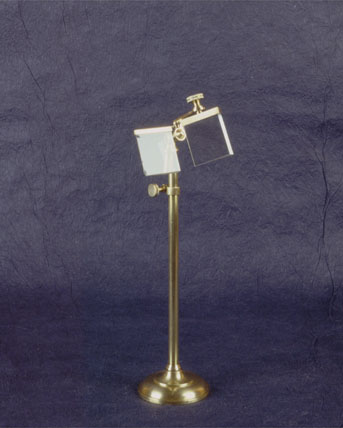| Descrição: | Composto por um suporte de latão, onde estão colocados dois prismas em cristal. Estes podem mover-se. |