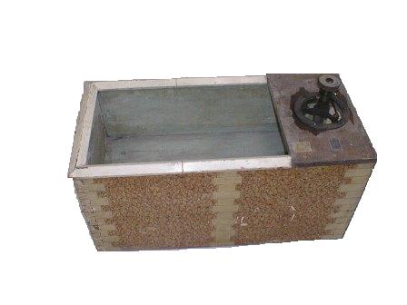 | Descrição: | Montada numa estrutura em forma de caixa retangular, sendo um dos lados mais estreitos em vidro e os restantes em madeira. As partes em madeira estão encaixadas por tornos de madeira. A parte superior da caixa é aberta, com exceção de uma pequena parte coberta por um pedaço de madeira com um orifício redondo onde está suportada a estrutura metálica da turbina. O pedaço de madeira instalado na parte superior está preso ás paredes laterais da caixa por seis parafusos oxidados. O interior da caixa está dividido ao meio por uma plataforma de madeira com um orifício igual ao superior e alinhado pelo mesmo para permitir a passagem da estrutura que já vem de cima. Na parte inferior da divisão da caixa encontra-se a roda da turbina disposta horizontalmente e com as pás disposta em sentido radial. A suportar a roda da turbina à estrutura de madeira na parte superior estão três veios metálicos com três rodas dentadas na parte superior unidas por uma corrente. A esta corrente está adstrita uma manivela que permite rodar a corrente e consequentemente os três veios metálicos. Estes, ligados à roda da turbina fazem esta mover-se, alcançando o objetivo para o qual este modelo foi construído – demonstrar como funciona a turbina de Fourneyron. Num dos lados laterais da caixa, na parte inferior, vê-se o canal de escoamento da água que sai da roda. Este canal é feito em madeira com a parte final a ser revestida em metal. |
