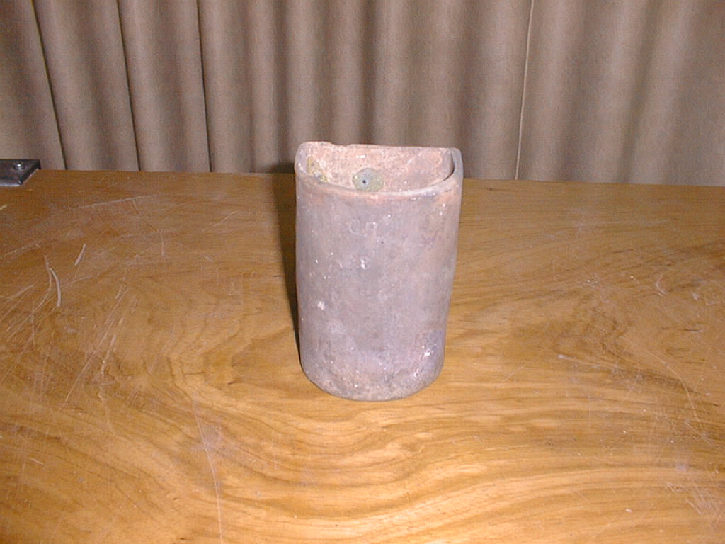 | Descrição: | Vaso com abertura lateral construído em cerâmica refratária. A parte superior do vaso é arqueada. Possui uma fenda vertical, em cada um dos lados da mufla. |
