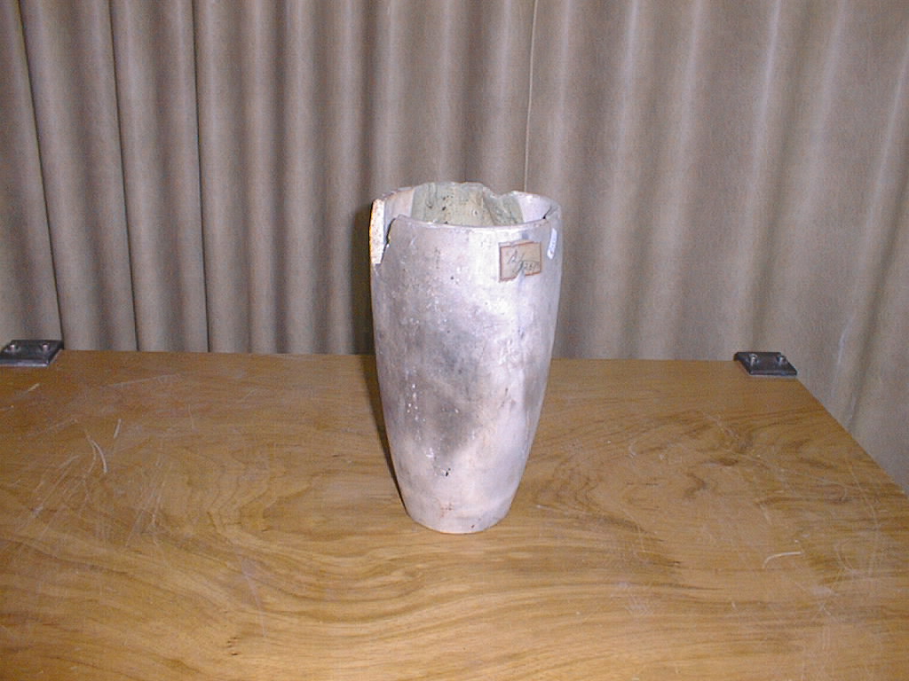 Dispositivo em forma de copo, feito em grés, podia ser colocado em contacto direto com a chama do bico de Bunsen.