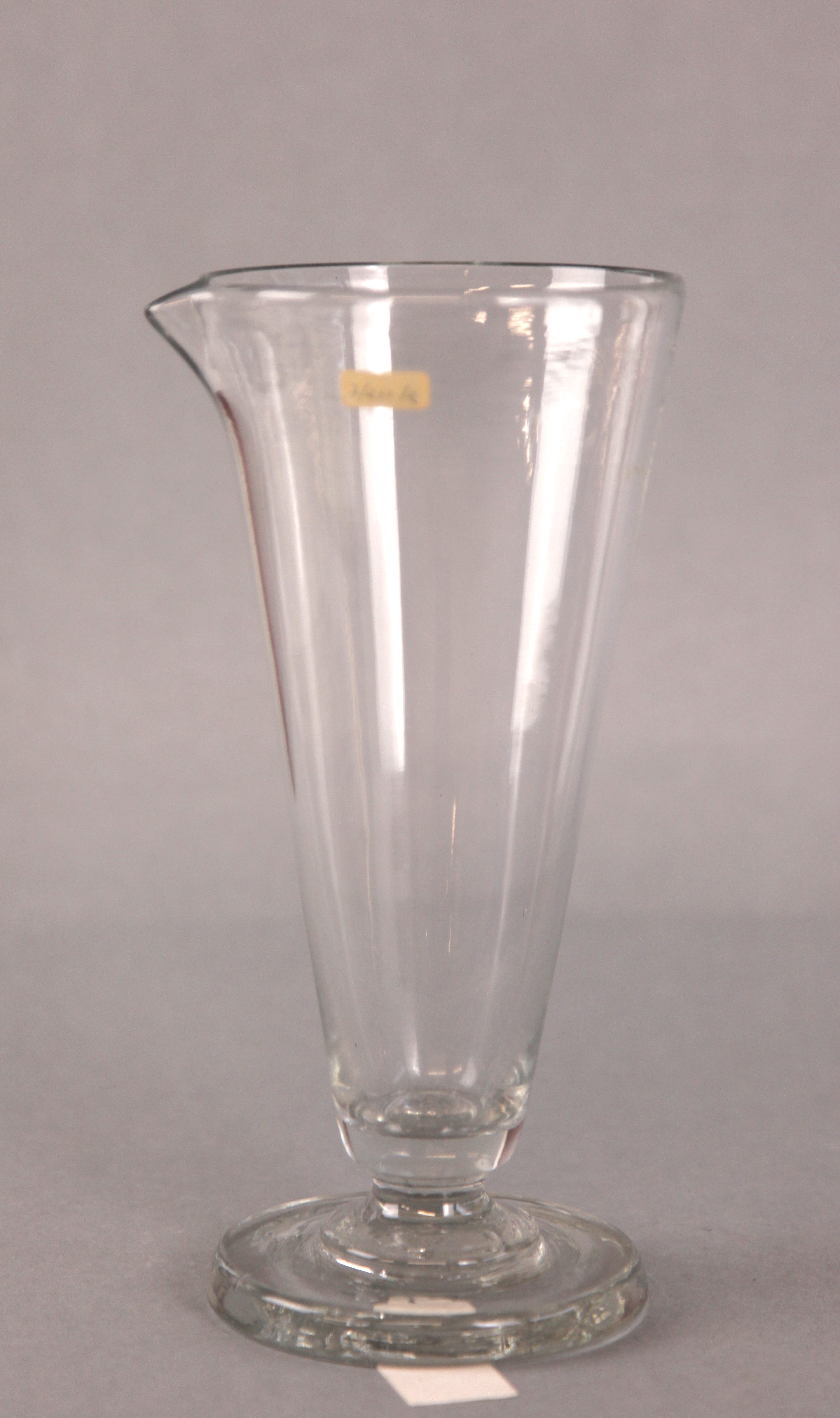 | Descrição: | Copo de medida com graduação, com forma cónica e de vidro, e com pé. |