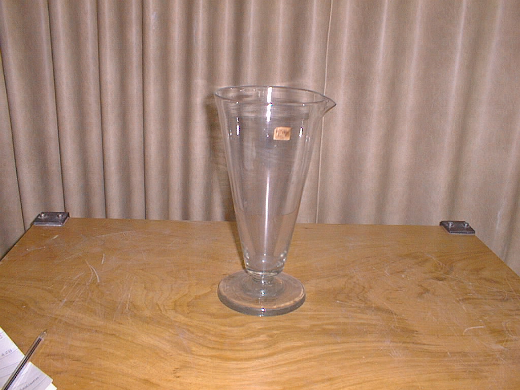 | Descrição: | Copo de medida com graduação, com forma cónica e de vidro, e com pé. |