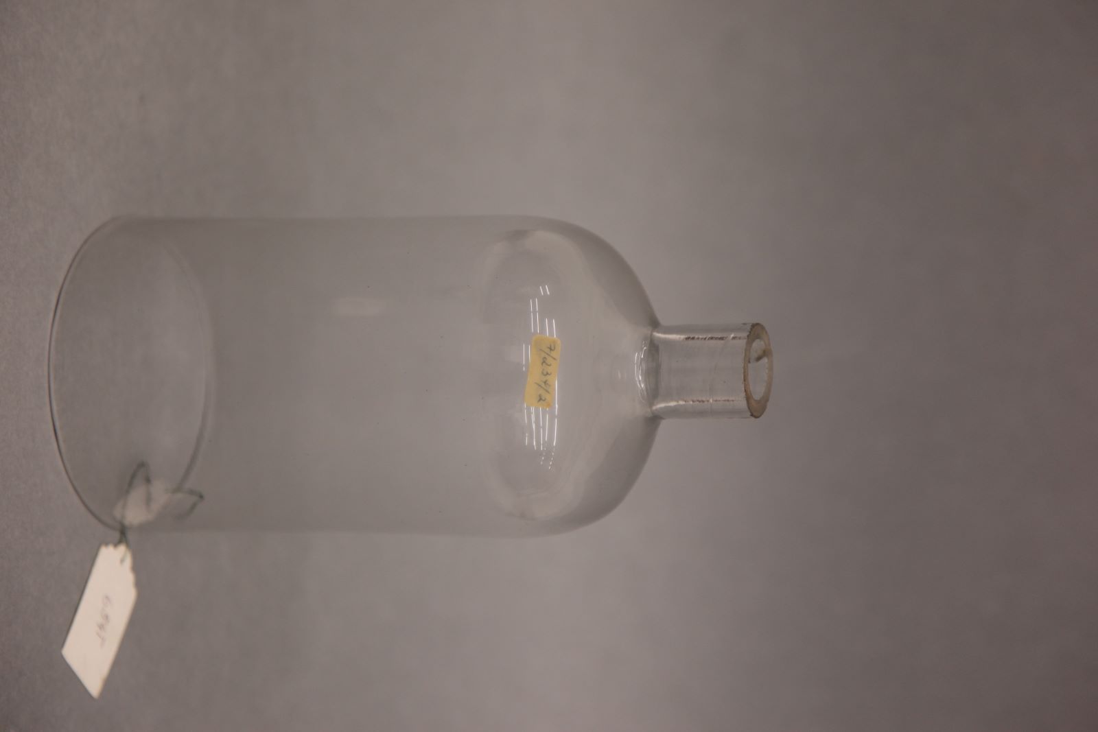 | Descrição: | Vaso de vidro em forma de sino com uma tubuladura na parte superior. |