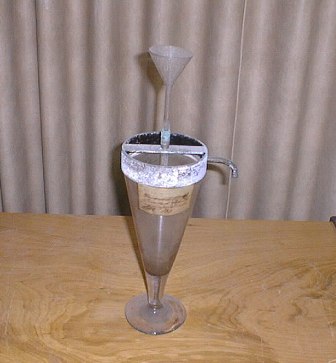 | Descrição: | Composto por um vaso em vidro cónico com uma guarnição em latão na parte superior, munida de um bico. Na parte superior possui um pequeno funil, também ele em vidro. |
