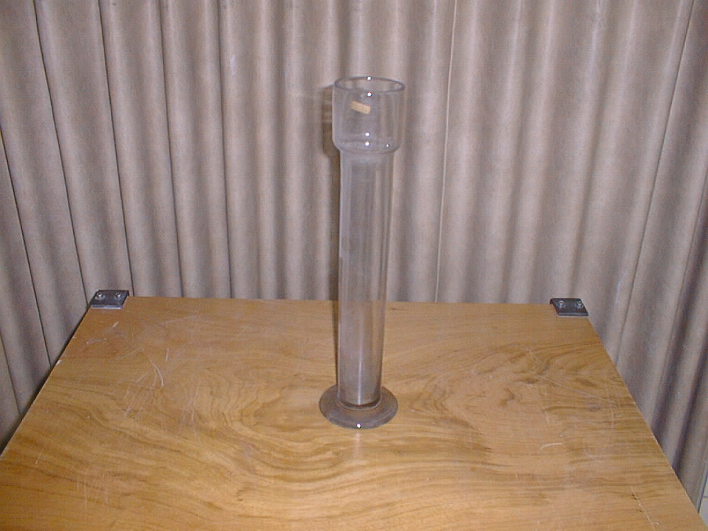 | Descrição: | Composta por um tubo de vidro grosso alto com pé, não graduado, que se enche de mercúrio até ao início da parte mais larga. |
