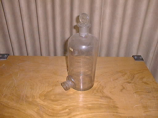 | Descrição: | Composto por uma com tubuladura na base e gargalo esmerilado com tampa. |