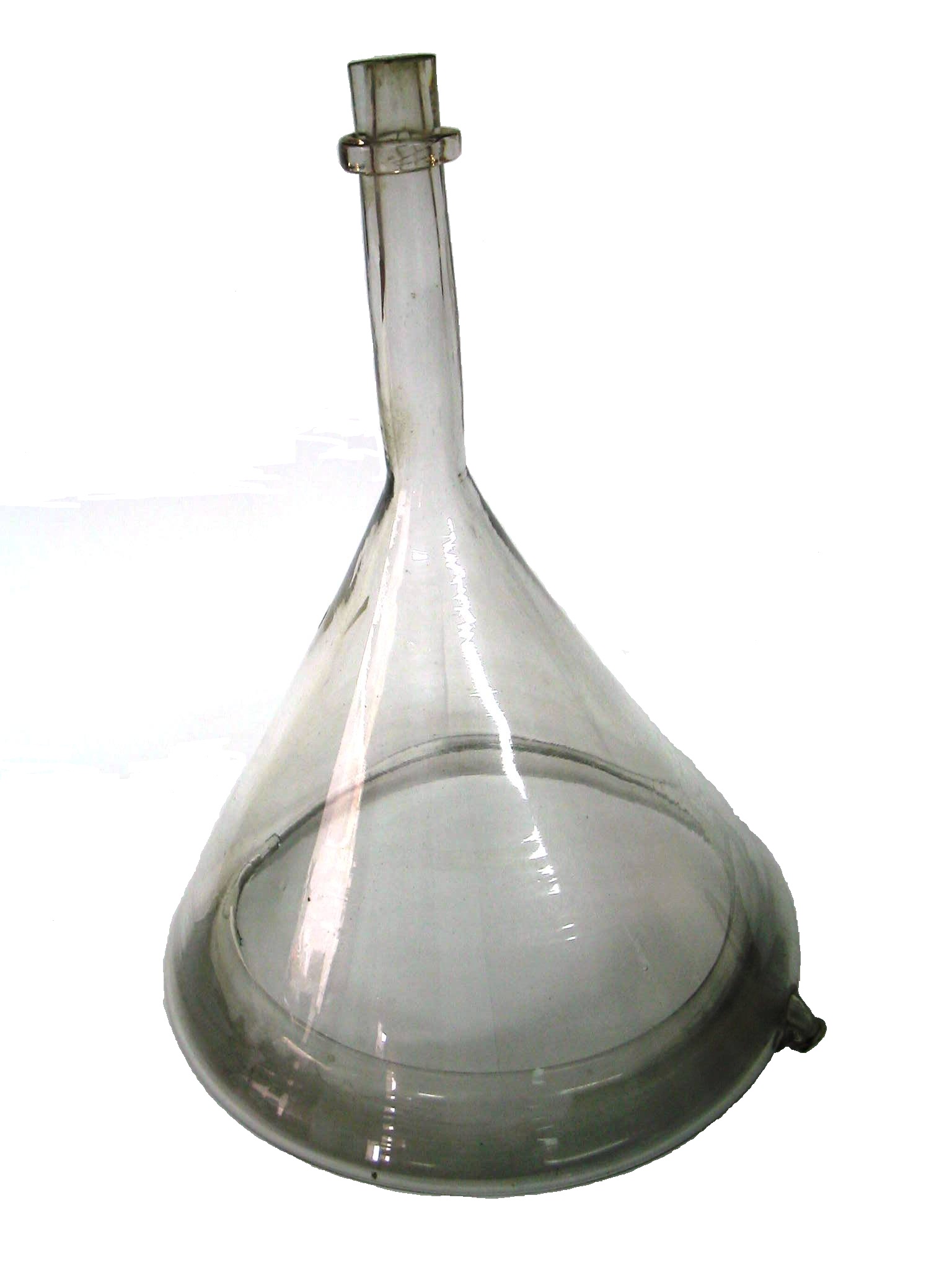 | Descrição: | Funil em vidro com a forma de cone aberto, com um rebordo na parte interior onde se localiza um pequeno orifício. |