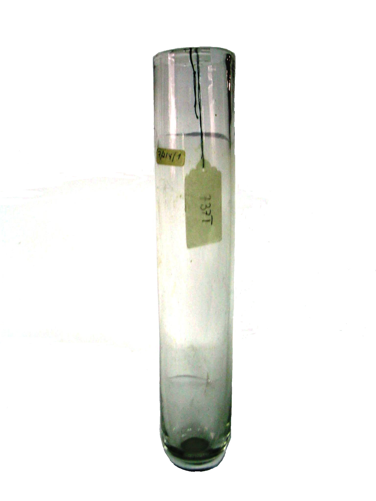 | Descrição: | Composto por um recipiente com forma cilíndrica de vidro e aberto no topo e com a base em forma de calote esférica. |