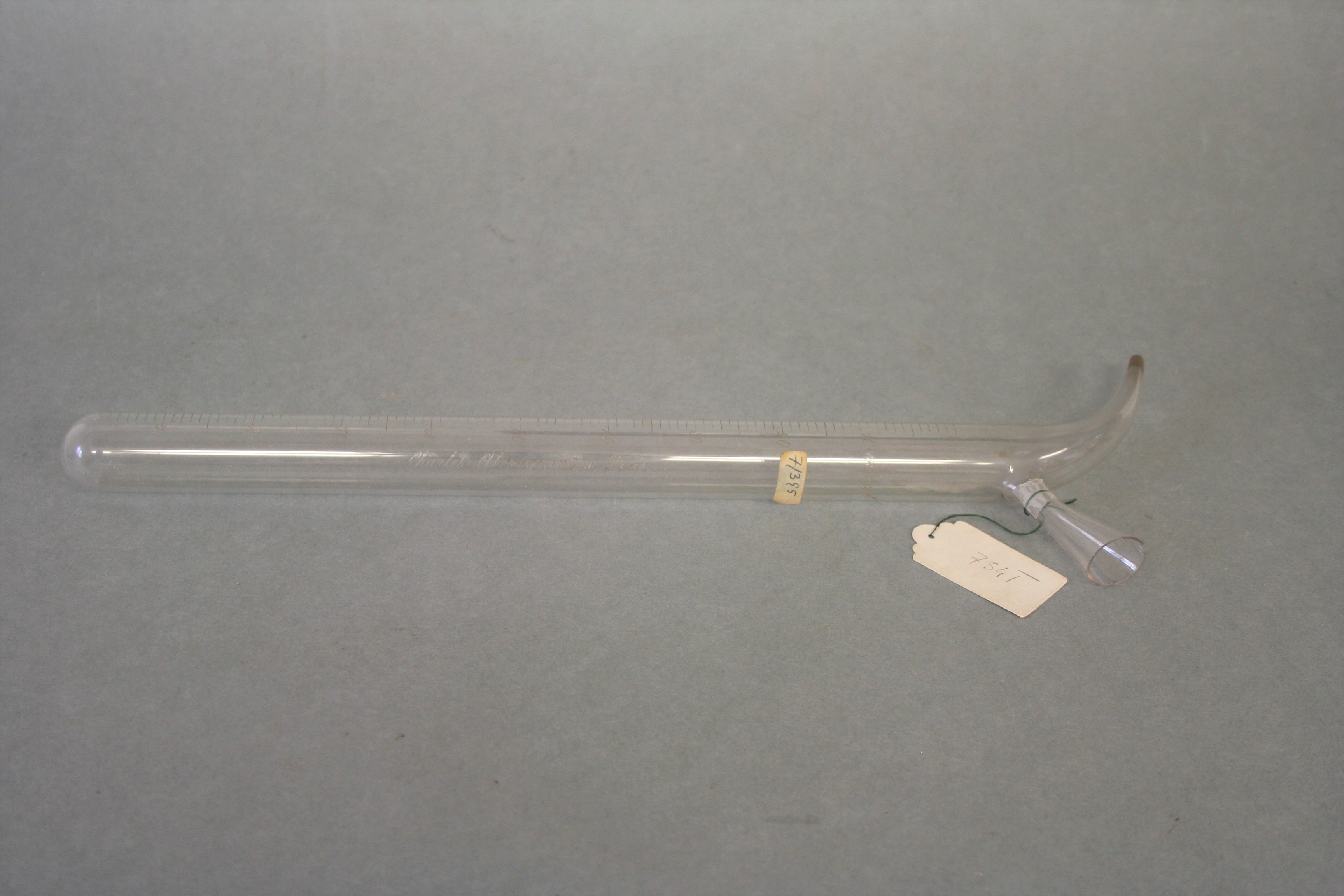 | Descrição: | Composta por um tubo de vidro cilíndrico, contendo uma escala graduada rigorosa. Possui na extremidade um pequeno tubo, com capacidade de 97cm3 graduada em 1 cm3. |
