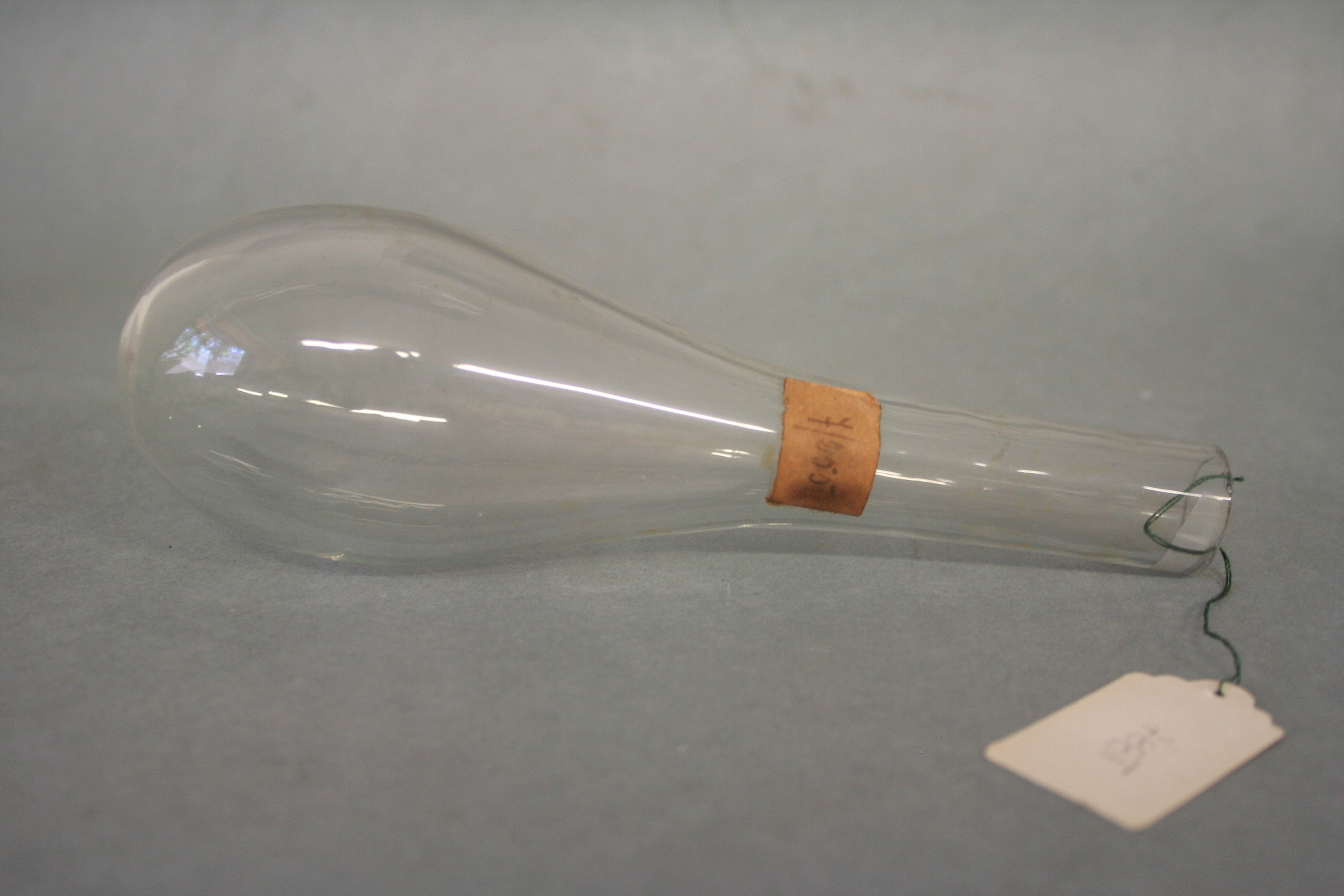 | Descrição: | Composto por um pequeno balão em vidro em forma de pera em que a ponta da abertura é um pouco alongada. |