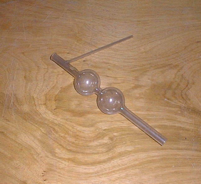 Composto por um tubo estreito de vidro com duas bolas e uma tubuladura lateral.