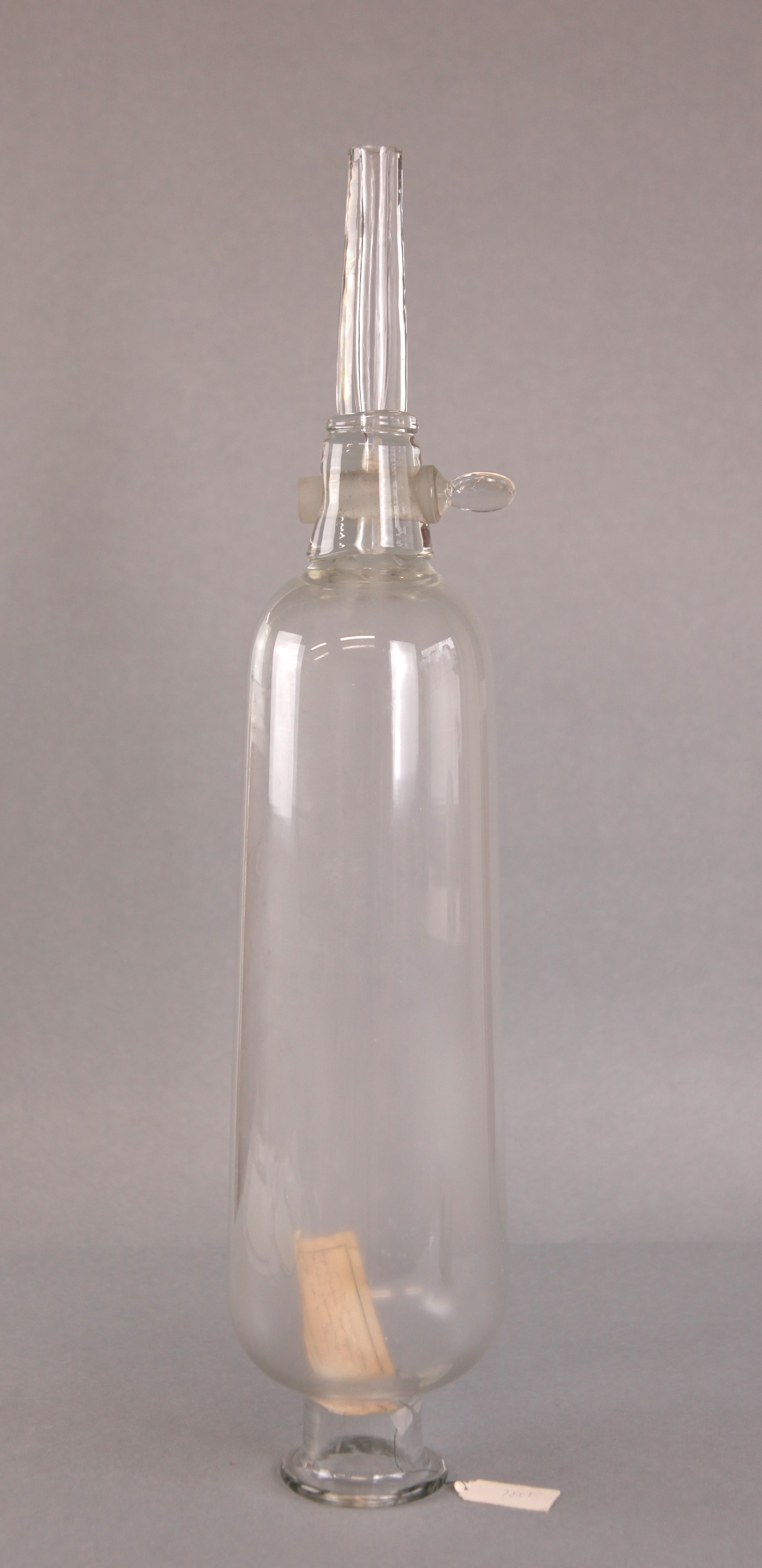 | História do Objecto: | Quase todos os utensílios empregues nas experiências químicas são feitos de vidro, principalmente devido à inércia química desse material. Entre esses se destacam os copos, cilindros de fundo plano abertos em cima e providos de bico para verter e os balões, que podem ter fundo chato ou redondo. |