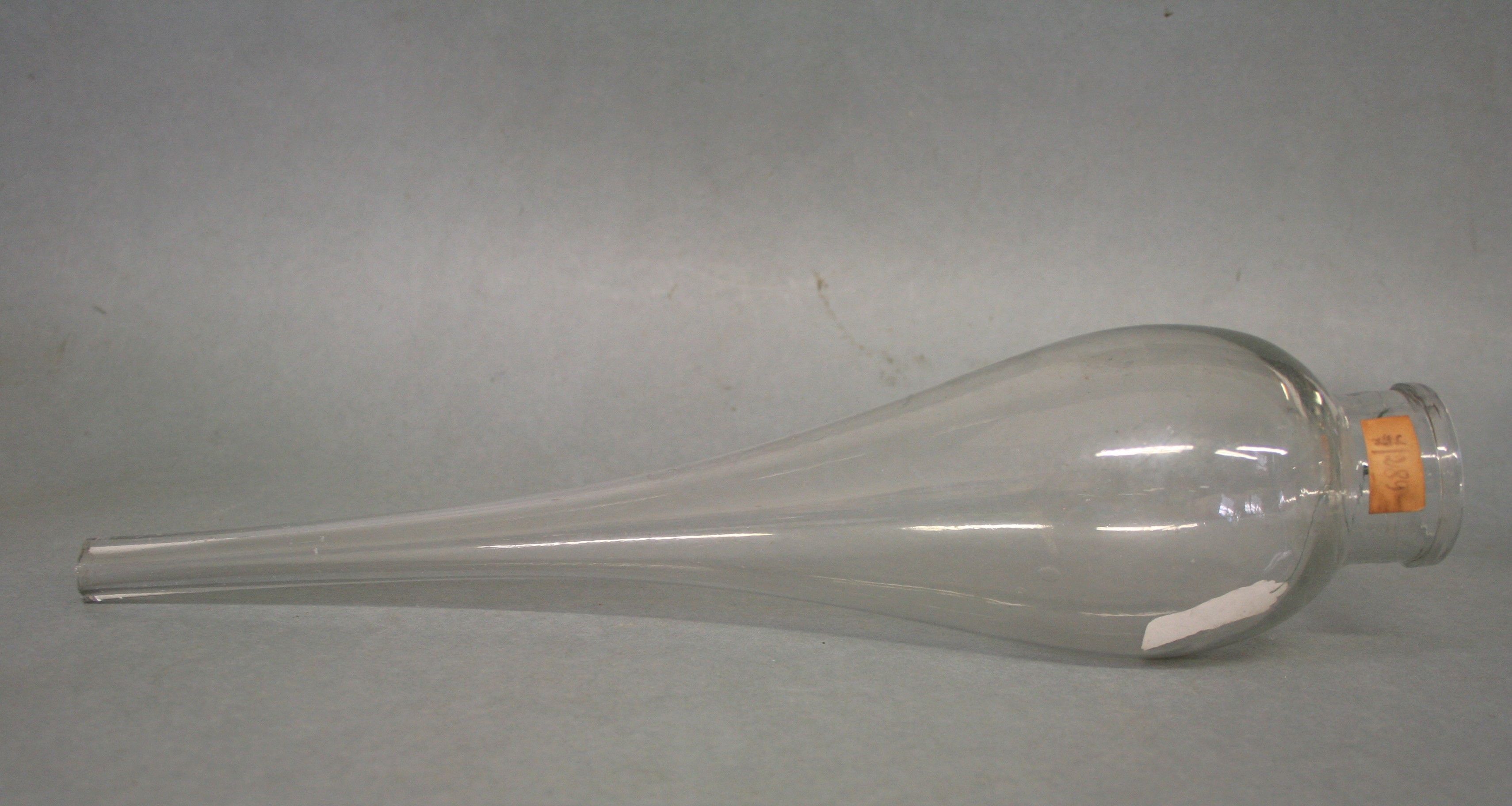 | Descrição: | Composta por um balão de vidro em forma de pera, com um pequeno gargalo numa extremidade e um tudo estreito e reto no lado oposto. |
