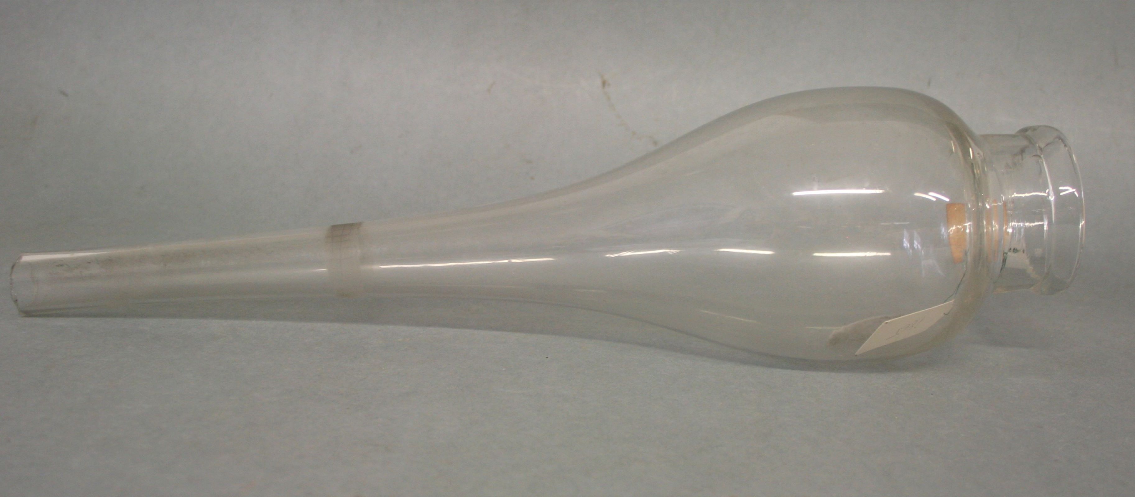 | Descrição: | Composta por um balão de vidro em forma de pera, com um pequeno gargalo numa extremidade e um tudo estreito e reto no lado oposto. |