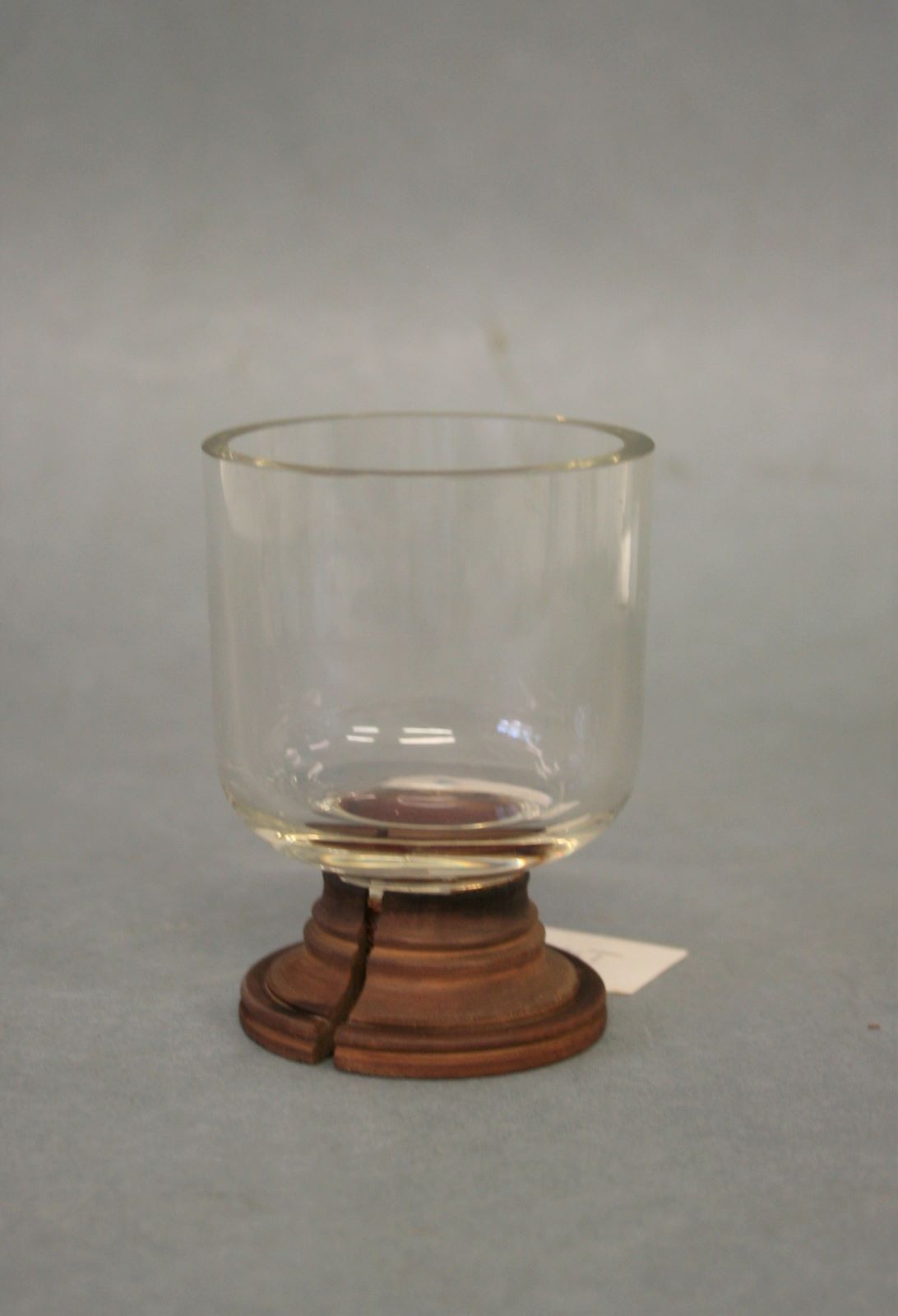 | Descrição: | Composto por um pequeno copo de vidro com pé em madeira. |