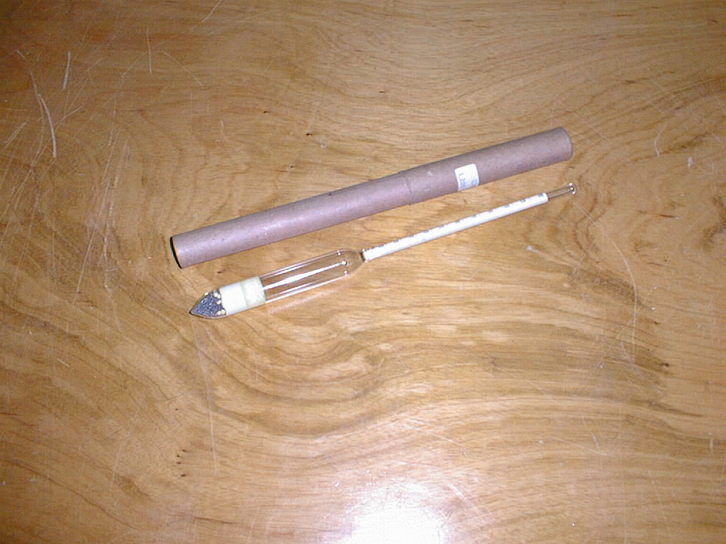 | Descrição: | Composto por uma haste de vidro perfeitamente cilíndrica, com uma escala no seu interior. Na parte inferior tem uma ampola com bolinhas de chumbo na sua extremidade, para o centro de gravidade ficar por baixo do centro de impulsão e conservar a haste na vertical quando flutua. |
