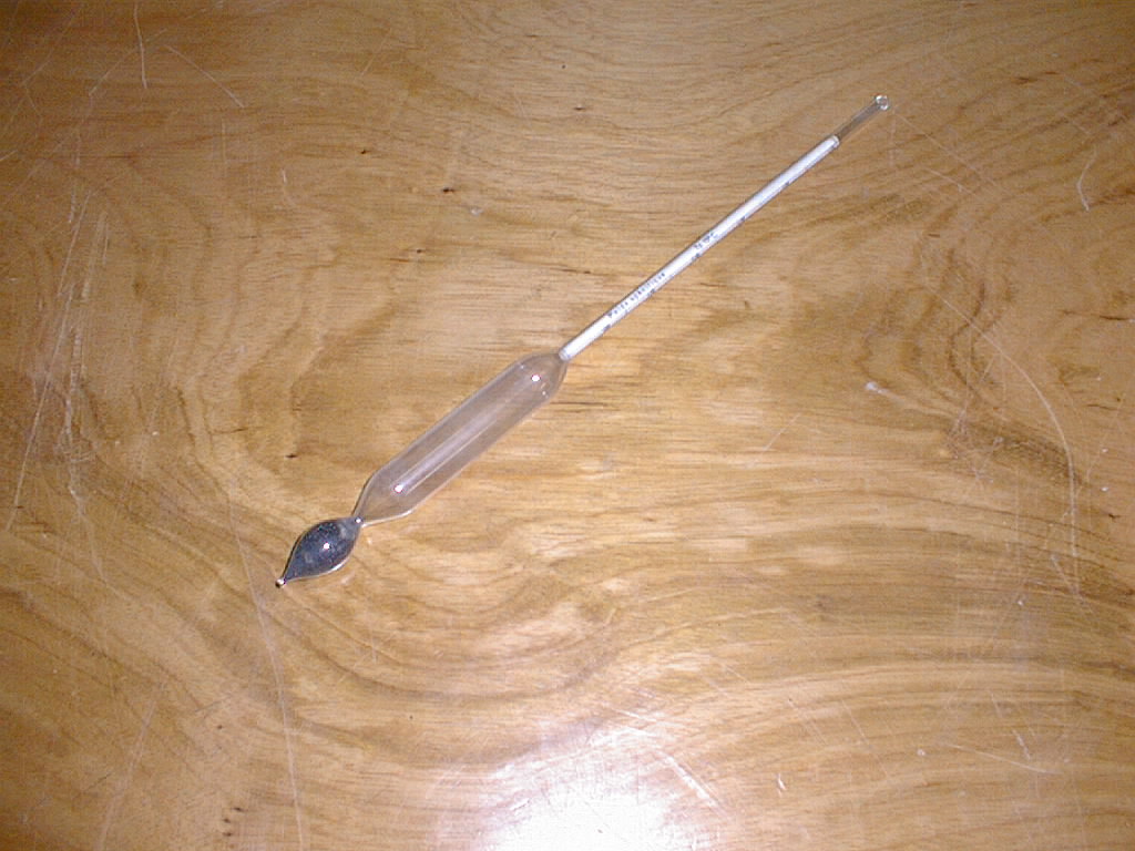 Composto por uma haste de vidro perfeitamente cilíndrica, com uma escala no seu interior. Na parte inferior tem uma ampola, e por baixo desta, outra mais pequena terminada em ponta, com bolinhas de chumbo, para o centro de gravidade ficar por baixo do centro de impulsão e conservar a haste na vertical quando flutua.