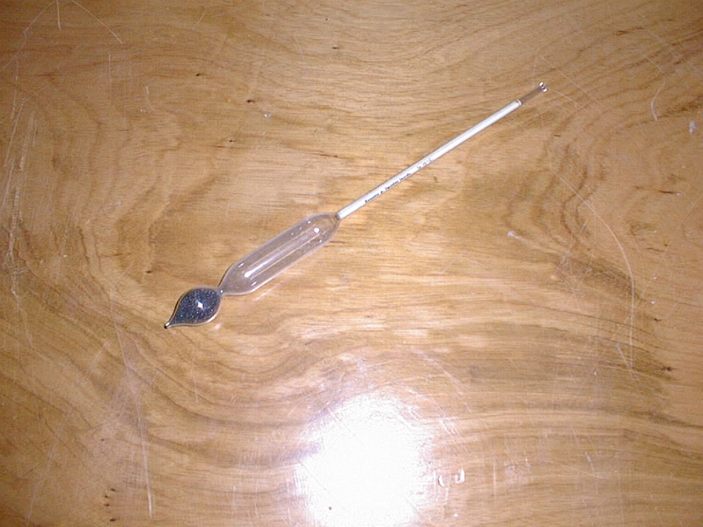 Composto por uma haste de vidro perfeitamente cilíndrica, com uma escala no seu interior. Na parte inferior tem uma ampola, e por baixo desta, outra mais pequena terminada em ponta, com bolinhas de chumbo, para o centro de gravidade ficar por baixo do centro de impulsão e conservar a haste na vertical quando flutua.