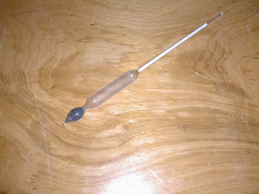 Composto por uma haste de vidro perfeitamente cilíndrica, com uma escala no seu interior. Na parte inferior tem uma ampola, e por baixo desta, outra mais pequena terminada em ponta, com bolinhas de chumbo, para o centro de gravidade ficar por baixo do centro de impulsão e conservar a haste na vertical quando flutua.