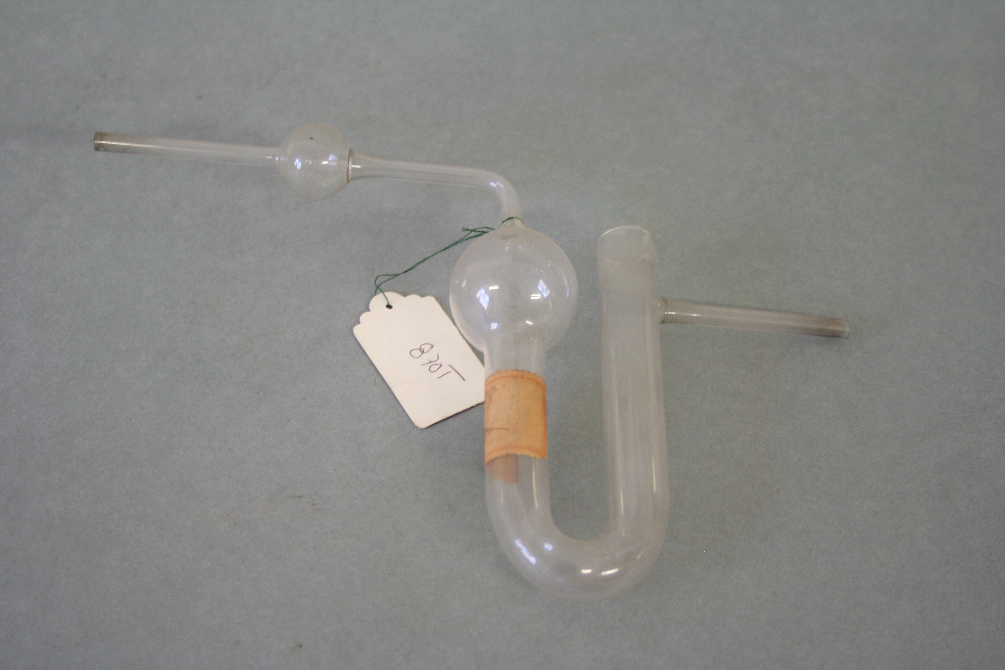 | Descrição: | Composto por um tubo em forma de U com duas esferas e um tubo lateral. |